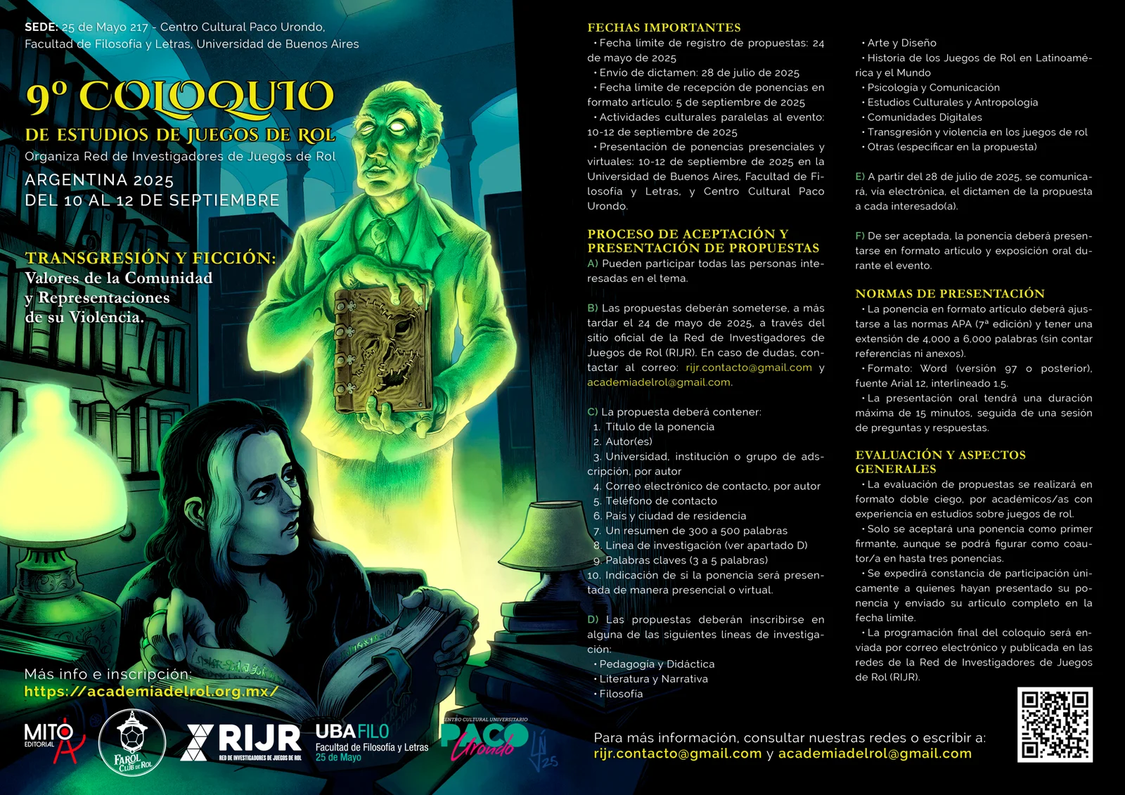 A Red de Investigadores de Juegos de Rol (RIJR) [Rede de Pesquisadores de RPG] prorrogou o prazo de envio de propostas para o 9º Coloquio de Estudios de Juegos de Rol [Colóquio de Estudos de RPG] que será realizado de 10 a 12 de setembro de 2025, de forma presencial e virtual, na Universidade de Buenos Aires (UBA), Faculdade de Filosofia e Letras, e no Centro Cultural Paco Urondo, na Argentina.