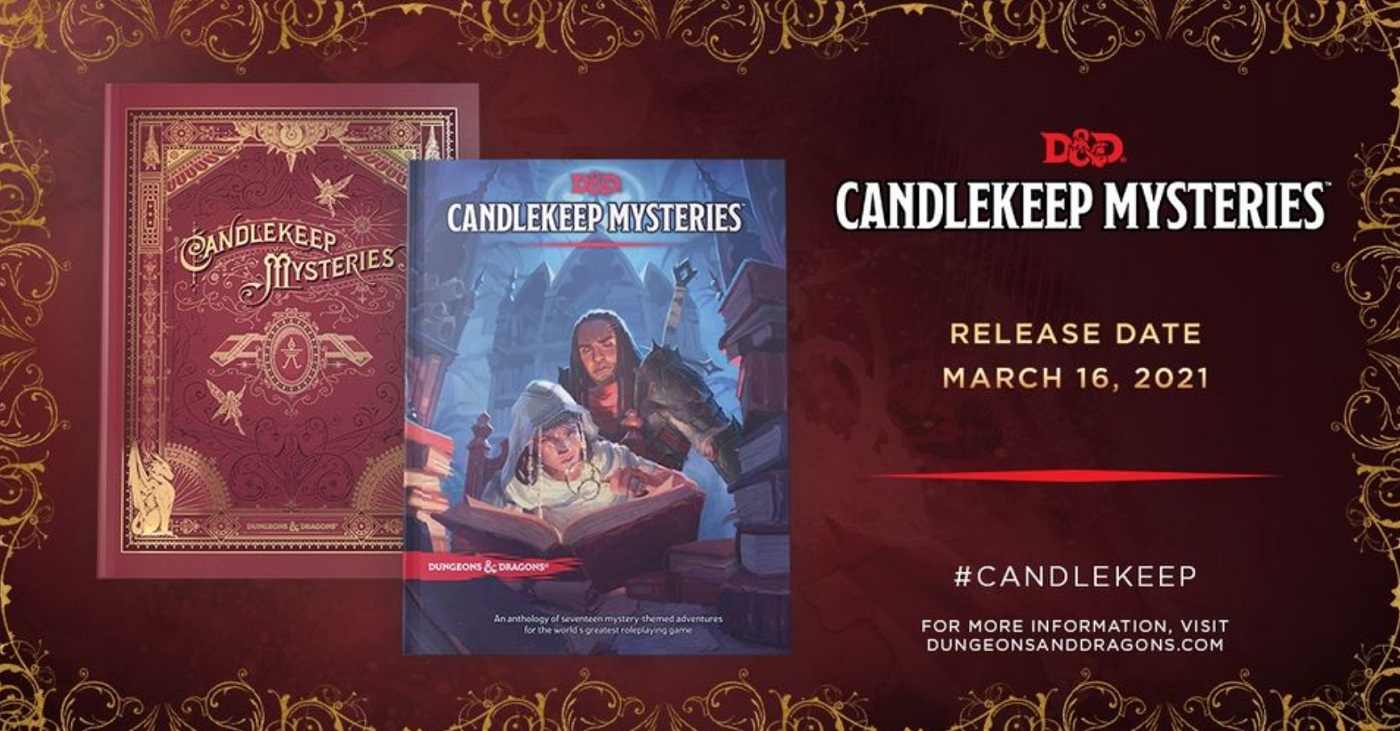 “Candlekeep Mysteries” (Mistérios do Forte da Vela, em tradução livre) é o novo livro de aventuras para a quinta edição de Dungeons & Dragons (D&D 5E), lançado em março. O suplemento é uma antologia com 17 aventuras de RPG com temática de suspense num dos mais clássicos cenários do RPG de mesa: Forgotten Realms (Os Reinos Esquecidos),.